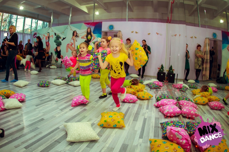 Программа получилась очень насыщенной: отчетные выступления двух детских групп, чаепитие, игры, а также шоуподушек с приглашенными актерами